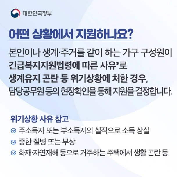 긴급복지 생계지원금은 특정한 위기 상황에 처한 가구에게 제공됩니다.