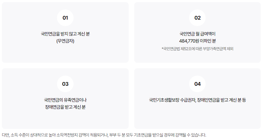 ● 거주 조건 : 국내에 거주 중이어야 하며, 해외에서 60일 이상 체류한 경우나 국외이주자, 재외국민은 신청이 불가합니다.