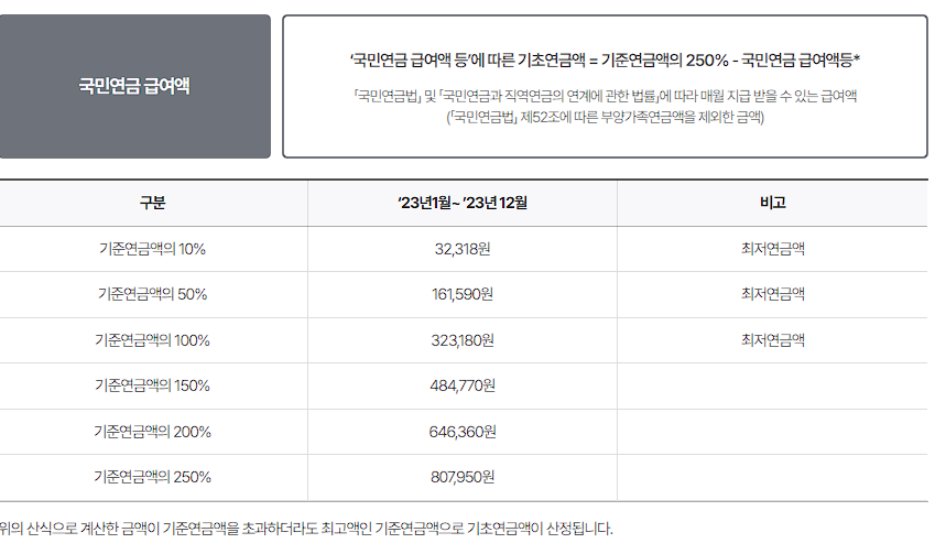 ● 소득인정액에 따라 차등지급되며, 24년 국민연금 급여액이 501,000원 이상인 경우 기초연금이 감액됩니다.