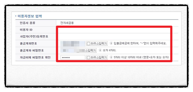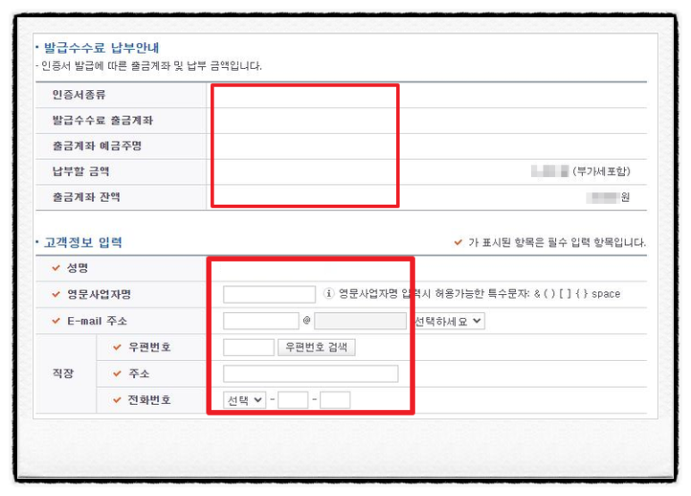 정확한 정보를 입력하는 것이 중요하며, 입력된 정보는 추후 인증서 관리 및 세금계산서 발급 시 사용됩니다.