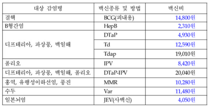 ● 성인 Tdap 백신: 보건소에서는 약 3 ~ 8만원정도의 비용이 발생할 수 있습니다.