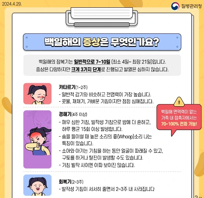 백일해는 전염성이 높아 예방접종 외에도 평소 위생 관리가 중요합니다.