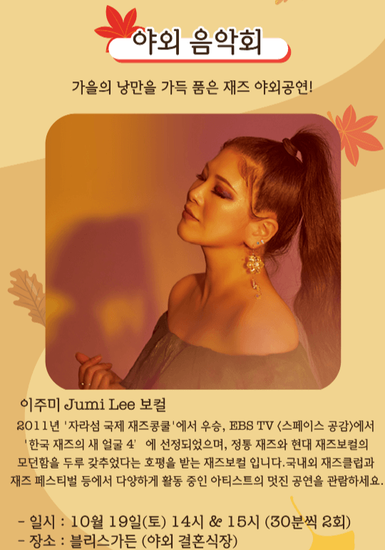 특별히 준비된 야외무대에서 공연이 진행되어, 가을 풍경을 배경으로 감상할 수 있습니다.