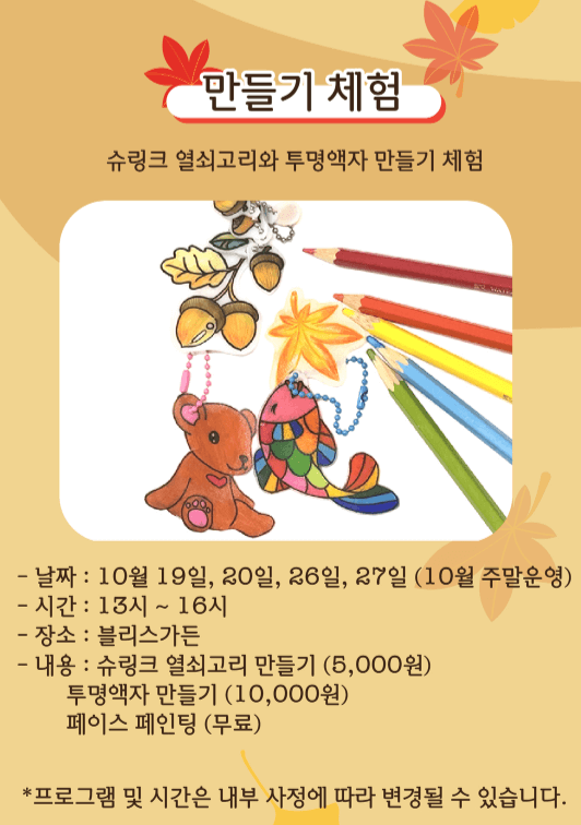 특히, 가을철 자연 속에서 힐링할 수 있는 활동과 단풍을 배경으로 한 특별 이벤트들이 많이 마련되어 있어 더욱 풍성한 경험을 선사합니다.