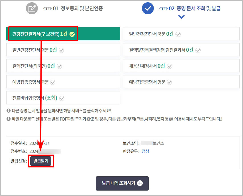 이후 검진 결과를 바탕으로 인터넷에서 발급이 가능합니다.