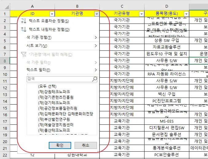 이 표에서 보듯이, 특정 조건에 맞는 데이터만 표시할 수 있는 필터 기능을 활용하면 원하는 정보를 빠르게 찾을 수 있습니다.