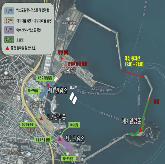 또한 여수불꽃축제장인 세계박람회장 일원 교통 통제가 있을 예정입니다.