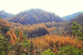 장태산 자연휴양림 내에서 단풍 전경을 한눈에 담을 수 있는 곳이에요.