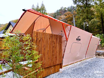자연 속에서 하룻밤을 보내며 가을의 정취를 만끽할 수 있는 글램핑 시설이 준비되어 있어요.