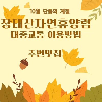 오늘은 장태산 자연휴양림을 대중교통으로 방문하는 방법부터 근처 맛집 추천, 단풍을 만끽하는 방법까지 완벽하게 정리해 드리겠습니다