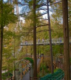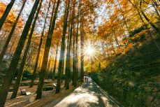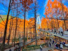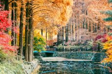 장태산 자연휴양림은 특히 가을철 메타세콰이아 나무들이 만들어내는 붉은 단풍 터널로 유명합니다.