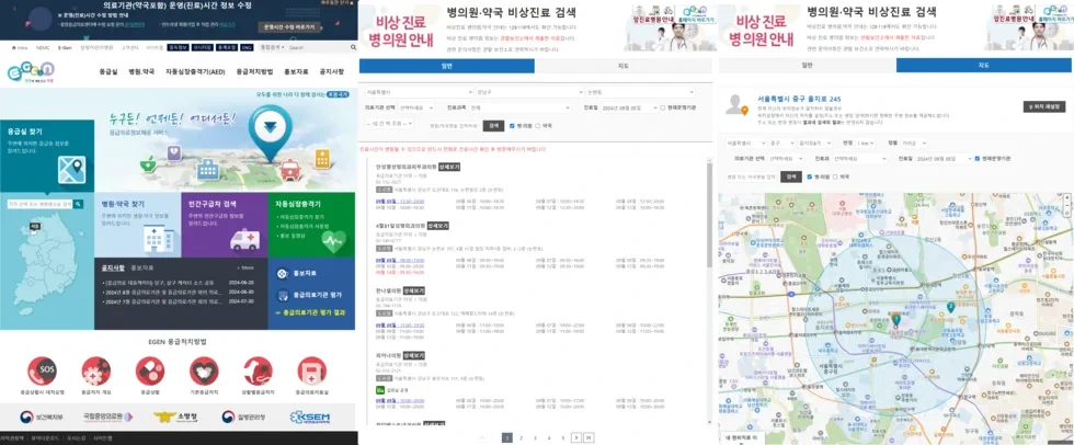 - 응급실, 병원, 약국의 운영 여부와 운영 시간 확인 가능