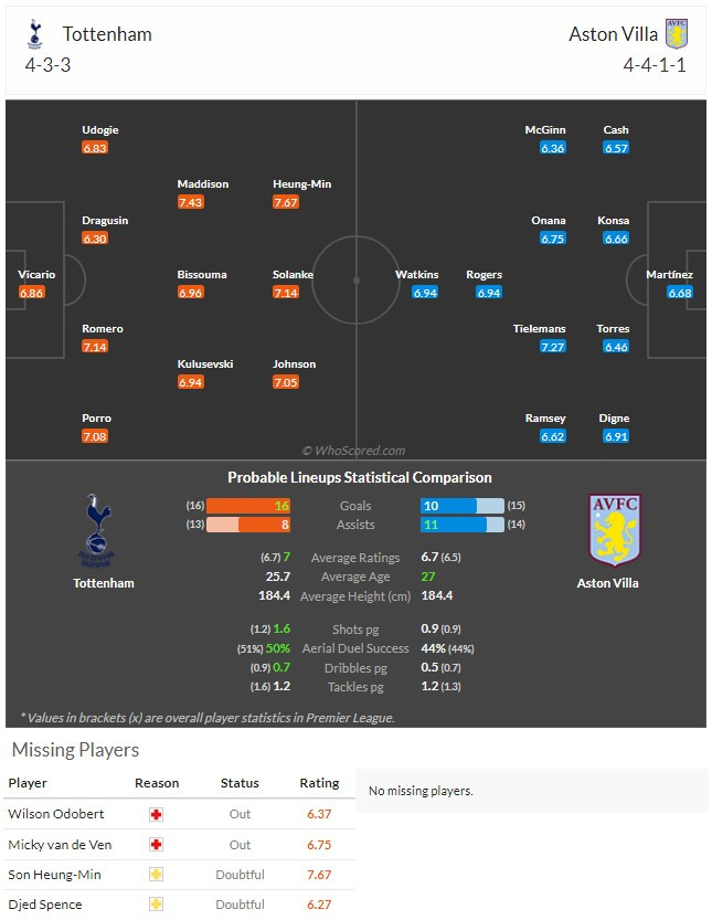 이번 토트넘과 애스턴빌라의 빅매치는 손흥민의 복귀 여부와 애스턴빌라의 강력한 역습 전술이 주요 변수가 될 것입니다.