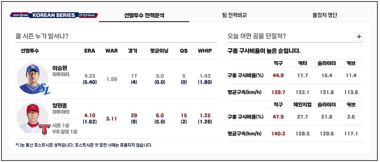 ● 특징과 강점: 좌완 투수로서 KIA의 타선을 효과적으로 억제할 가능성이 있으며, 긴 이닝을 소화할 수 있는 체력과 경기 집중력이 돋보입니다.